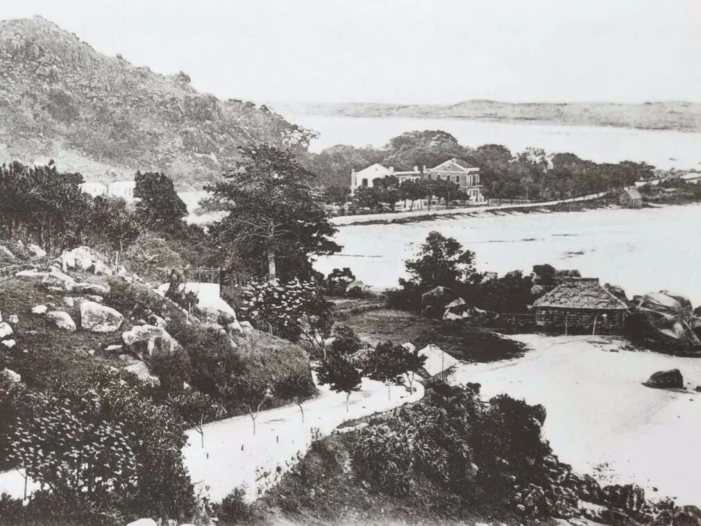 黑沙海滩,约1900年。澳门黑沙海滩是位于中国澳门路环岛南侧的海滩,因其独特的黑色沙粒而得名。黑沙海滩长约1,350米,黑沙幼滑,更被誉为澳门八景之一,是进行水上活动或观星的首选热点。