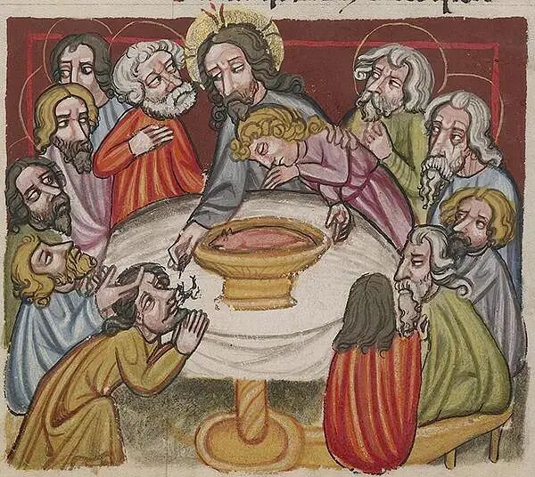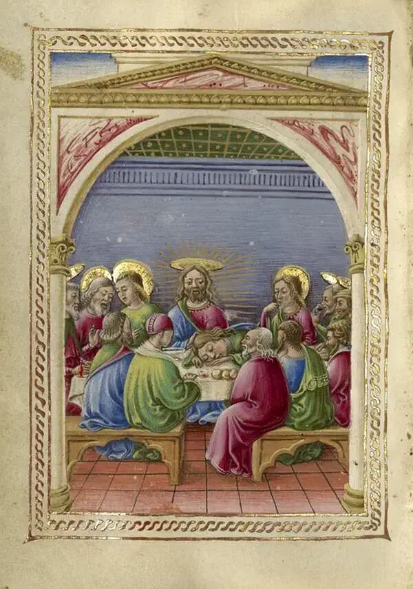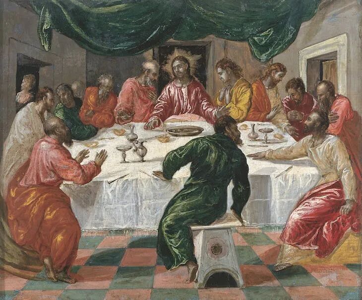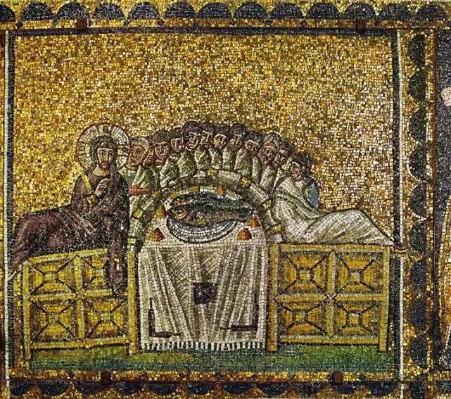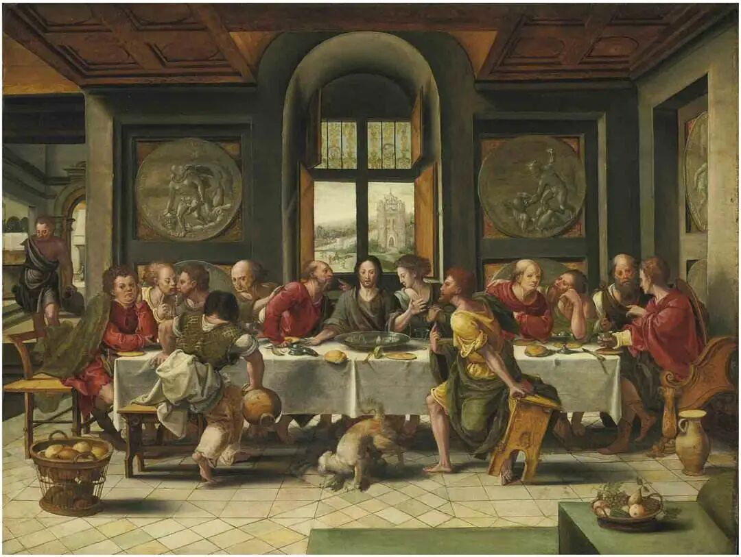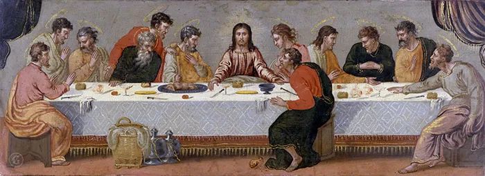 但凡论及这则宗教典故的艺术呈现形式,我们大脑中应该会自动浮现出达·芬奇的那副传世名画《最后的晚餐》。的确,达·芬奇凭借自己无与伦比的天赋,在人类艺术史上留下了一副神来之笔。但事实上,这个充满戏剧张力的场景,自古以来就是艺术家偏爱的主题。大约在520年左右,在意大利城市拉文纳的一座教堂中,就出现了第一幅《最后的晚餐》的壁画。在此之后,大量的相同题材艺术作品被源源不断创作出来。