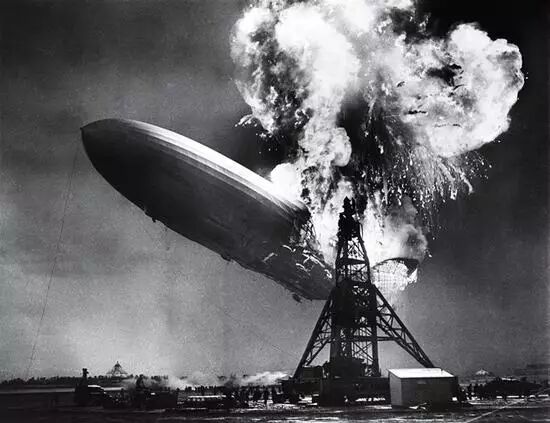 1937年5月6日,长804英尺的 LZ 129 飞艇从法兰克福飞到兴登堡。突然,飞艇内充的氢气引起了火灾,使它成为明亮的黄色火球,并造成了36人死亡。这场事故使得飞艇时代迅速接近尾声,而这张照片也成为世界上最早的空难记录之一。时至今日它仍然警示着人类,科技可能导致的破坏和死亡。
