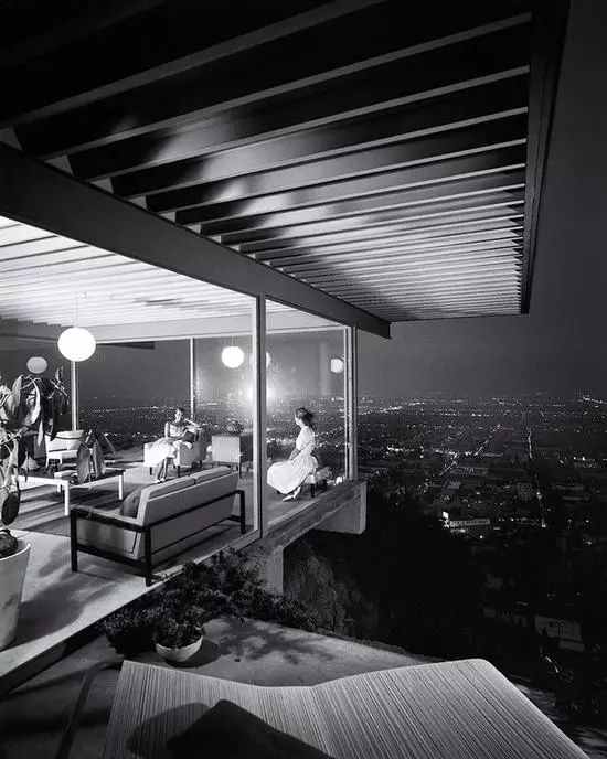1960年5月,布鲁克林摄影师朱利叶斯·舒尔曼前往建筑师 Pierre Koenig 的 Stahl House,这是一个玻璃封闭的好莱坞山庄,坐拥洛杉矶的壮丽景色,是建筑实验的一部分,颂扬现代主义的新式工业材料。这是最成功的房地产宣传图像,把房子描绘成了美好生活的实际载体。