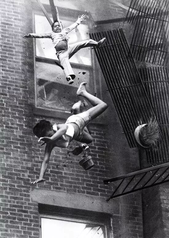 69、火灾逃生坠落|Fire Escape Collapse,斯坦利-福尔曼(Stanley Forman),1975