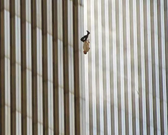 大部分关于“911”恐怖袭击的照片都飞机与摩天大楼的悲剧性空难,而这张照片不同,他的主题是一个人。摄影师在2001年9月11日攻击后的时刻,抓拍下了一个人从燃烧的建筑物里跳下的瞬间,在那场大规模悲剧中,《Falling Man》是唯一一张广为人知的照片。这张照片在袭击后的几天里,在美国各地的报纸上出版。这个坠落的人的身份仍是未知的,但是这样的一个受害者,在一场未知的战争里受难,历史被定格,值得人们反思。