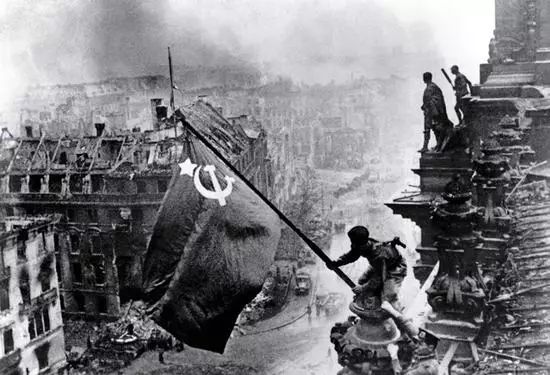 35、国旗飘扬在柏林国会大厦之上|Raising a Flag over the Reichstag,叶甫盖尼-哈尔岱(Yevgeny Khaldei),1945