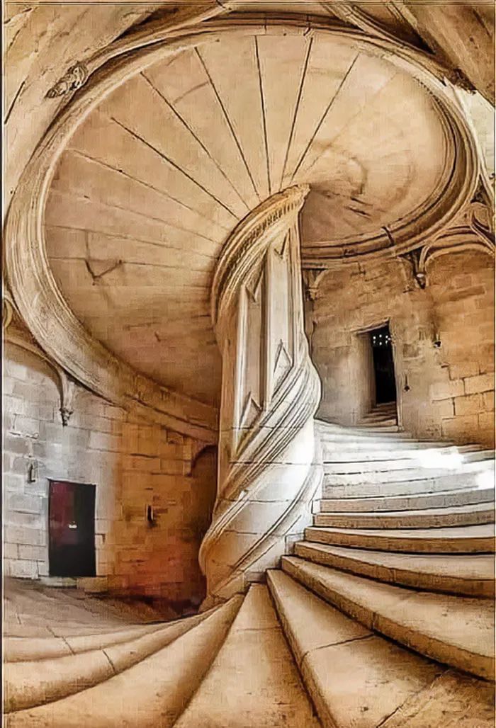 法国香波堡城堡的楼梯,由文艺复兴时期的伟大传奇达芬奇,于1516年设计的。