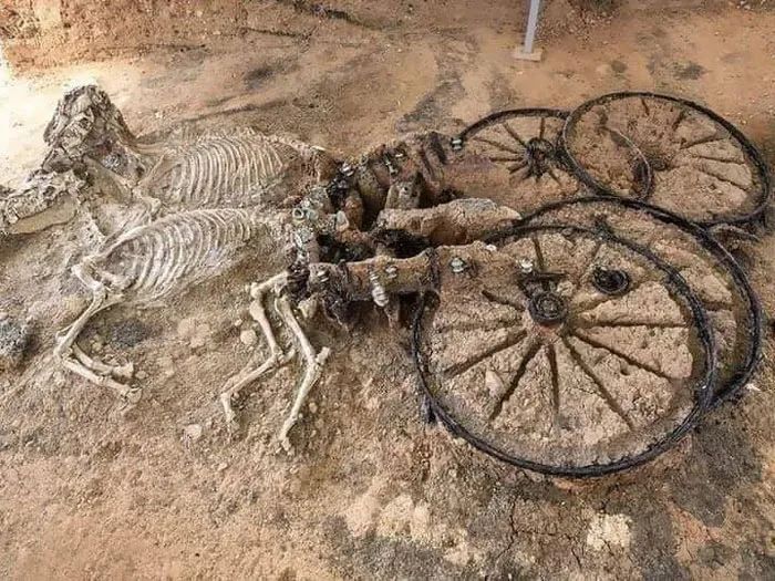 2000 年历史的色雷斯人战车的骨架。发现于保加利亚卡拉诺沃
