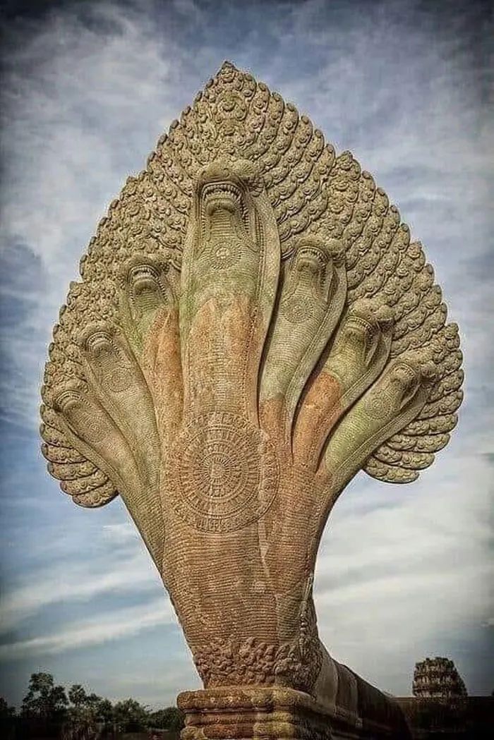 柬埔寨吴哥窟 7 头蛇 (Naga) 雕像。在印度神话中,被称为 Naga 的半蛇半人被视为河流、水井、泉水和所有饮用水的守护者。