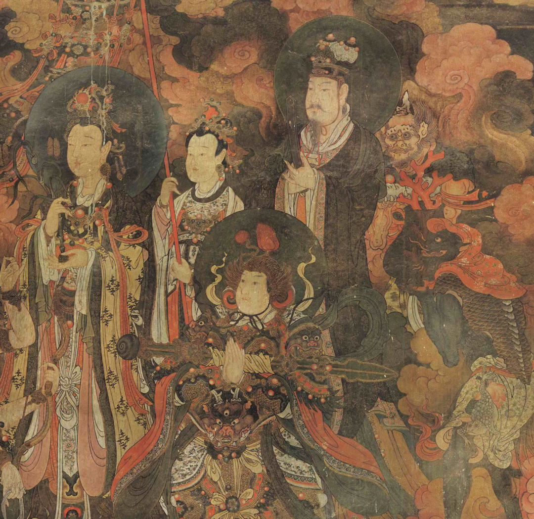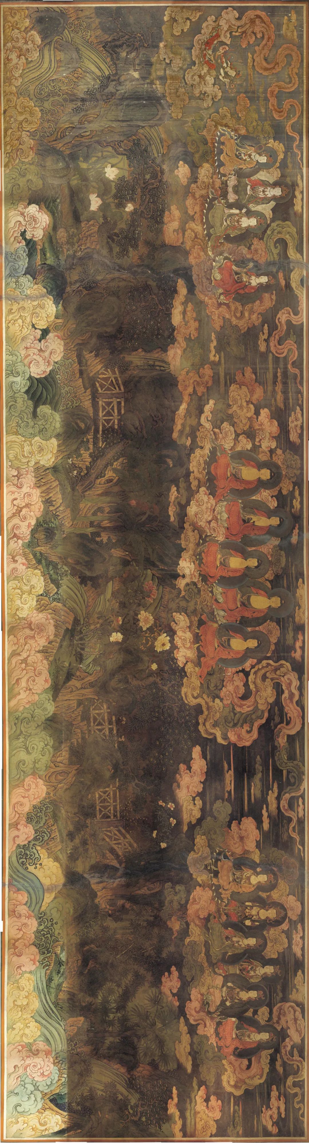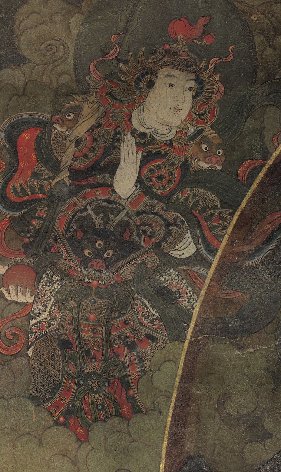 描绘以帝释梵天为首的二十诸天礼佛护法的行进队伍。