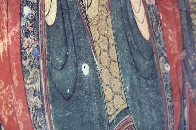 此外,法海寺壁画采用“叠晕烘染”的上色技巧,就是将颜料层层叠染,有些部位一种颜色,由浅到深叠晕烘染达到七层之多,极费时间精力,但出来的效果却层次分明,美得惊人。