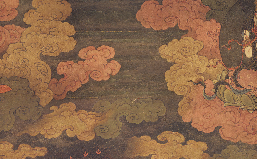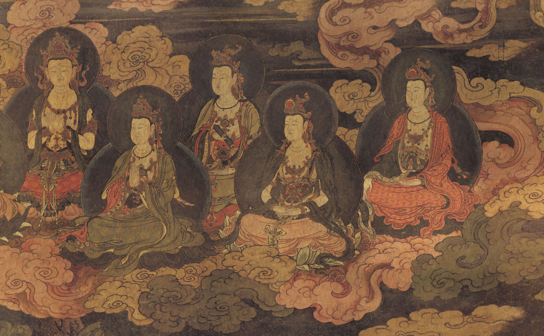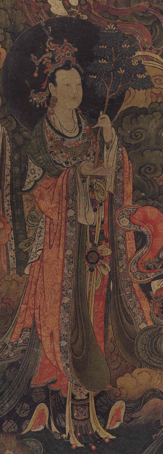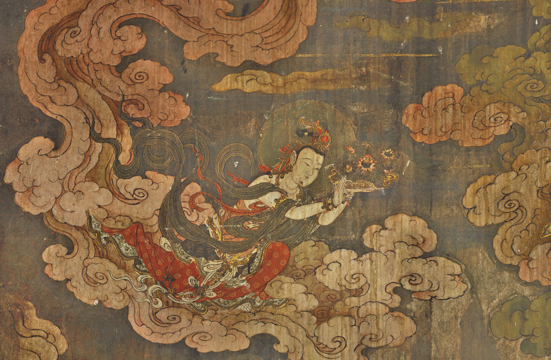仅在菩提树天的服饰中就出现了凤舞、龙翔、牡丹、菊花、云团等近十种不同的纹样形式。