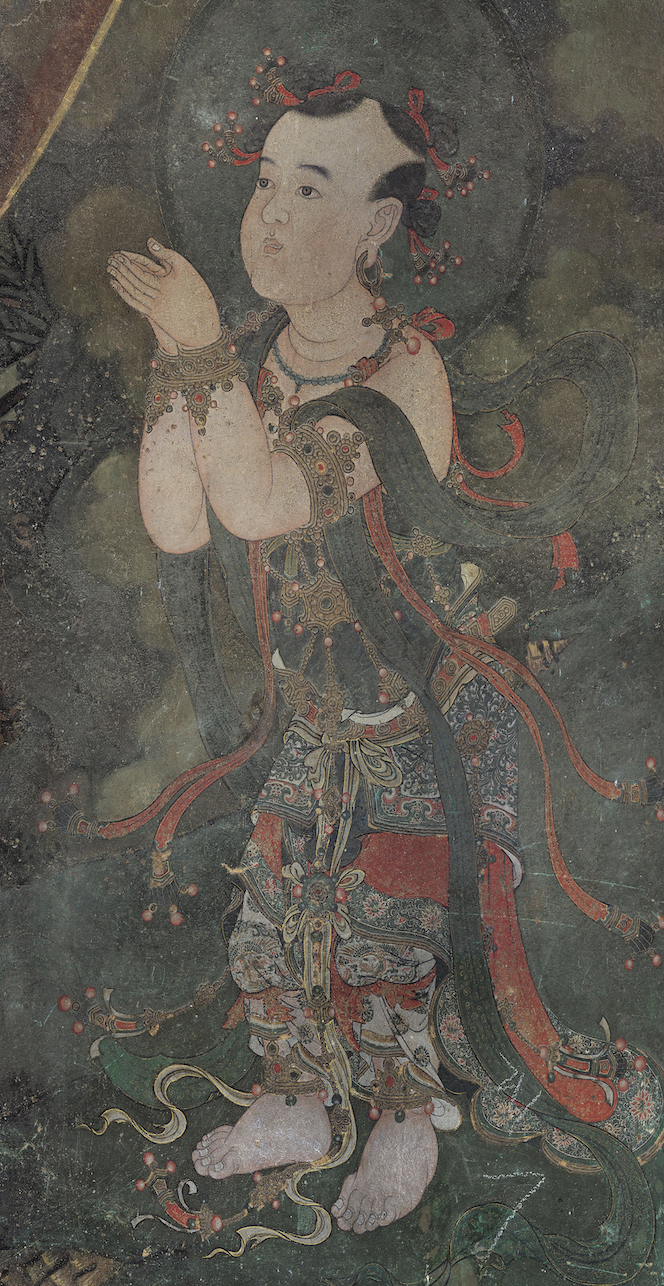 水月观音的薄纱披肩:“细如蛛丝,薄如蝉翼”。