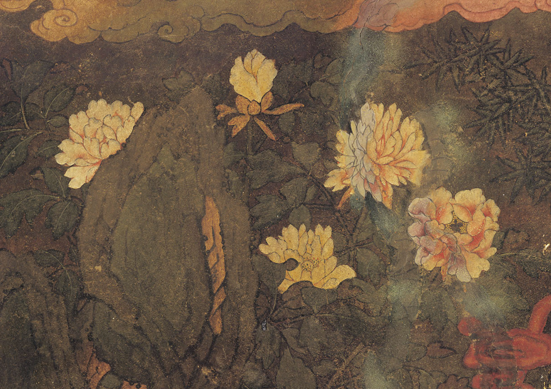 赴会图中的几处花草,极不起眼,但当你放大去看,实在不输给任何一个伟大的花鸟画家,甚至你仿佛能够感受到它好像透过了积年的尘埃和阴暗的光线,散放着清香。