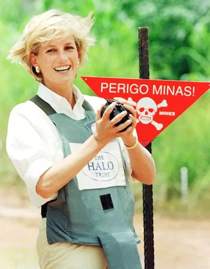 她曾为全球反地雷运动奔走呼告,生前曾多次亲赴安哥拉、波黑等战乱地区,并亲自踏进地雷区视察,探视当地因触雷而导致伤残的平民。