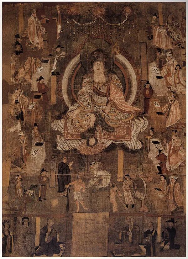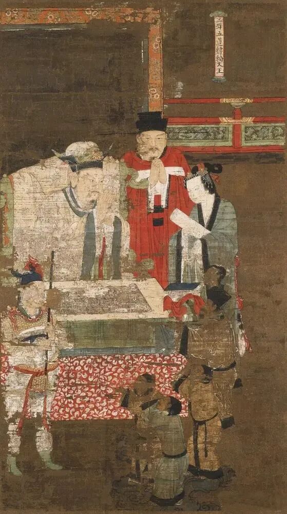 现藏于大英博物馆。中间为地藏菩萨,左右为十王,下方是审判罪人的场面,有崔判官、僧道明、狮子、牛首狱吏、挥笔吏和戴枷罪人。