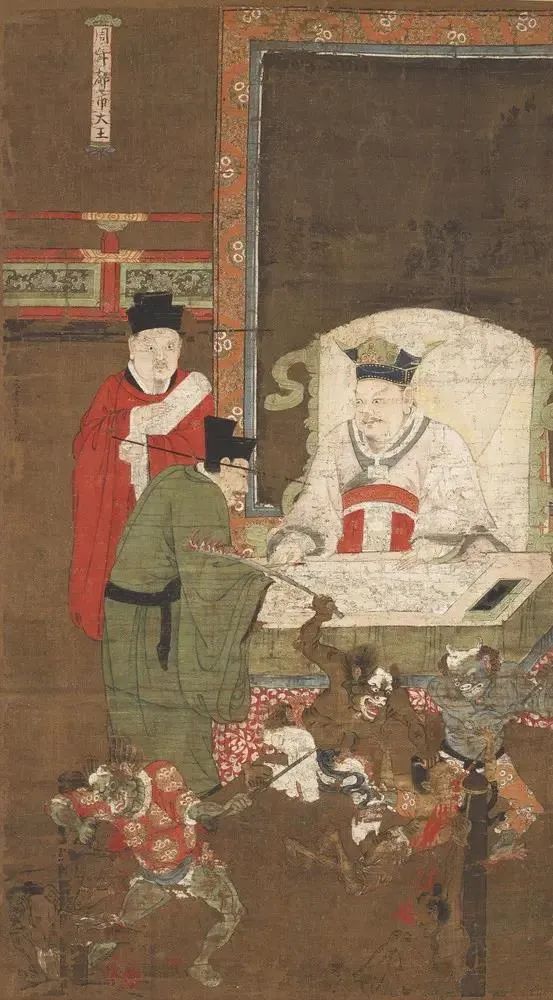 现藏于日本永源寺。十殿阎罗各一幅,上半部為审判罪人場面,下半部分是地獄景象,有受刑罪人和行刑小鬼。