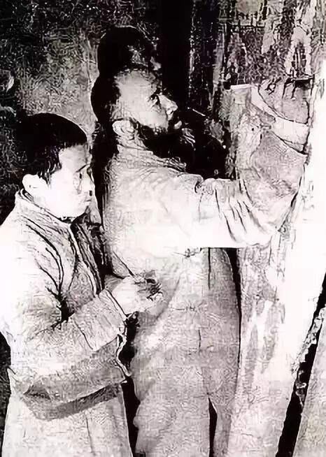 1941年5月,张大千携三夫人杨宛君(后二夫人黄凝素加入)、儿子张心智、侄儿张彼得、学生肖建初和刘力上及几个裱工,后又聘请藏画家索南丹巴的四个弟子等赴敦煌考察研究石窟壁画。面壁近三年,他匍匐于昏暗的洞窟角落,神往于斑斓的佛教圣境,倾倒于瑰丽的艺术画卷,如痴如醉。