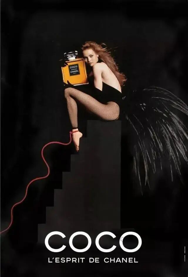 而在另一款香奈儿香水广告中,模特又化身为黑鸦女王,背后生出黑色羽翼,脚上却被束缚绳索,而怀中的香水则是她守护的珍宝。↓