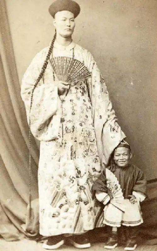 此后詹世钗来到遥远的英国,到了英国,他的身高依旧是成为了亮点,很多贵族为了看他、和他合影,愿意一掷千金,而且那位英国商人十分聪明,懂得包装,就算到了英国,他也为詹世钗买了清朝的官服穿在身上,此后,这种中国特色浓郁的服装也成为了詹世钗的便服。
