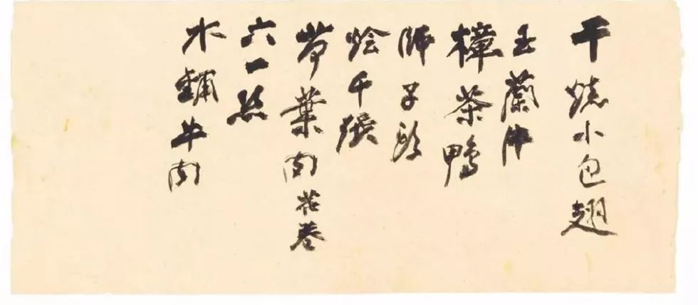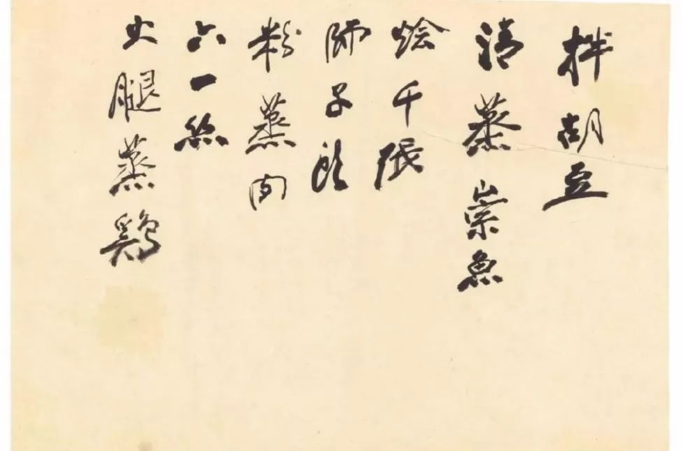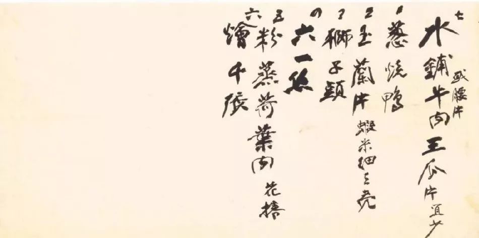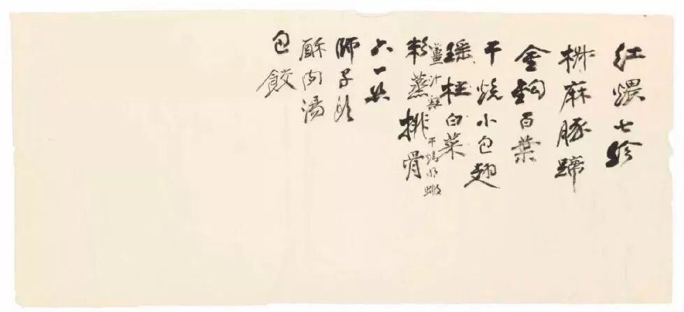 ▲ 张大千《菜单—葱泡鱿鱼丝》