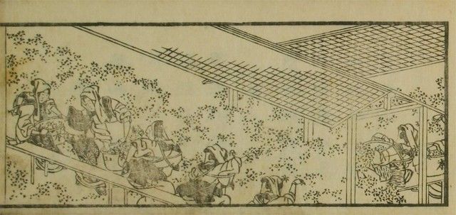 透过幽暗的窗棂窥视吉原热闹的场景。