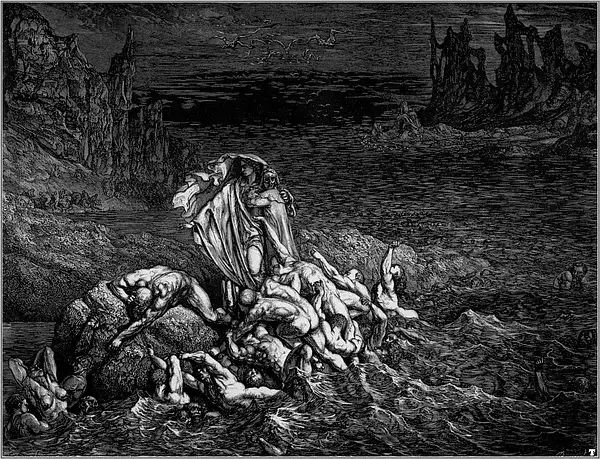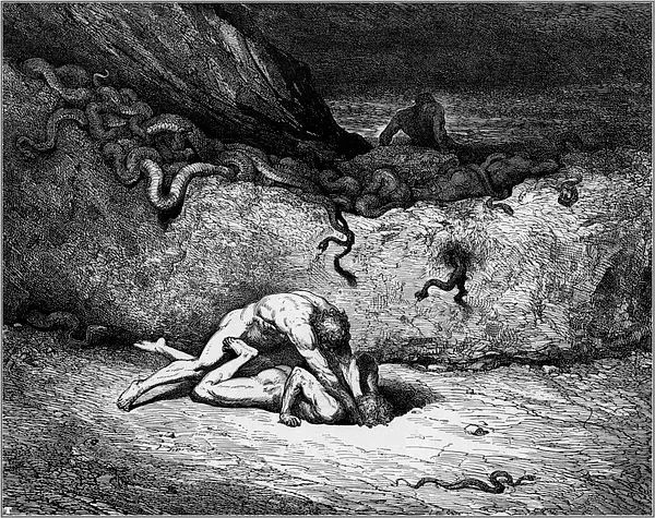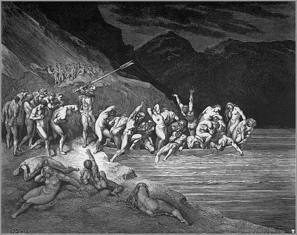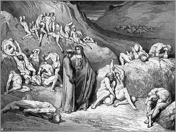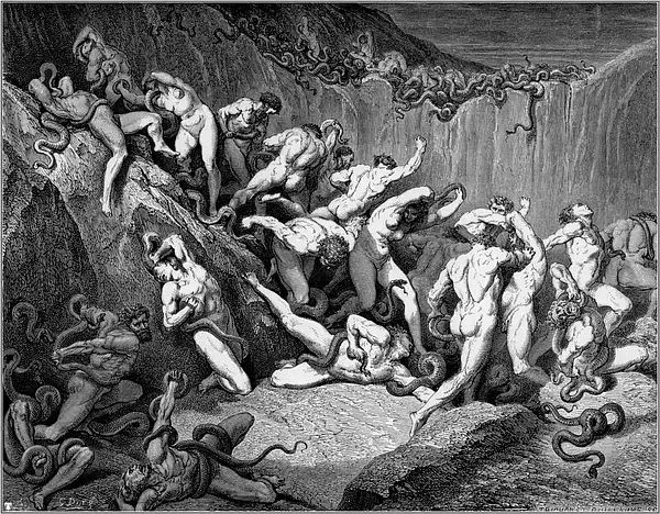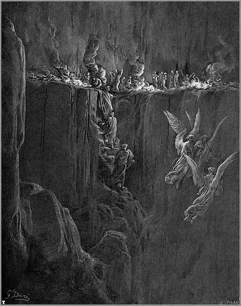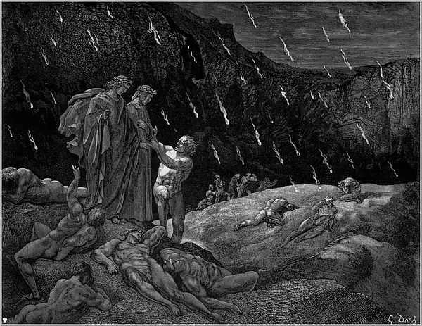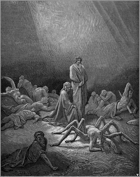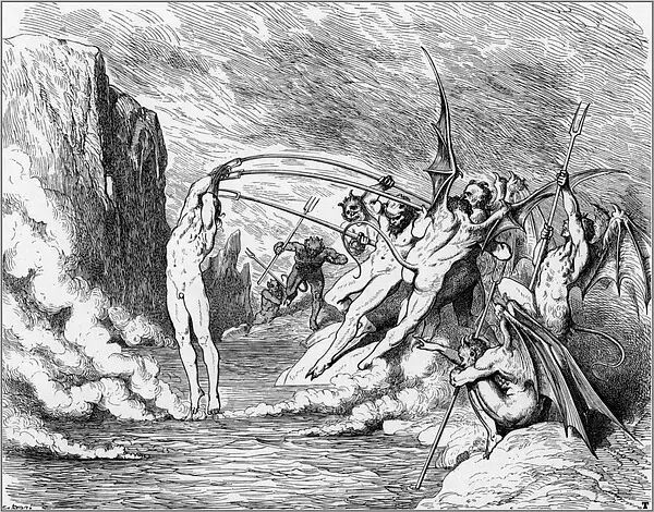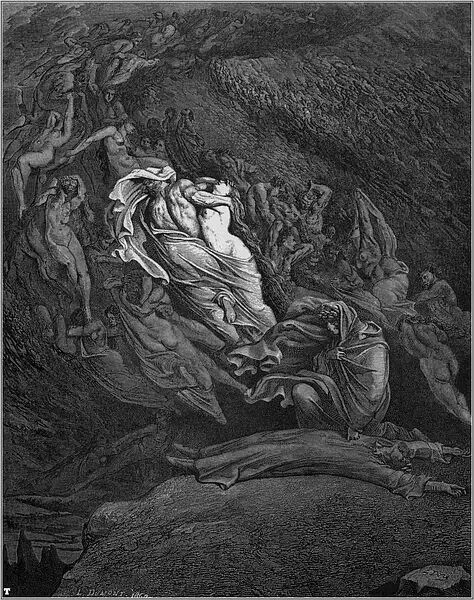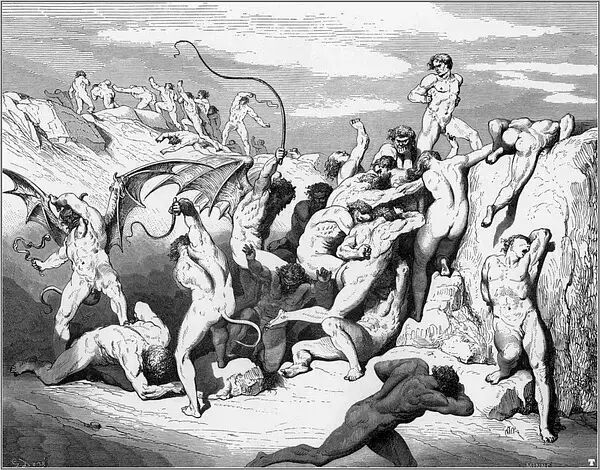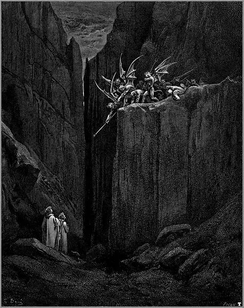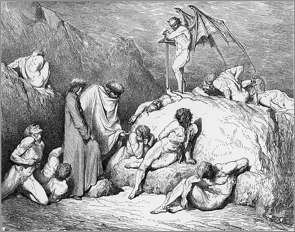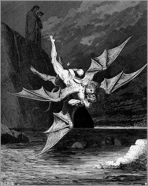 1854年的一天,多雷跨进了法国最有名的出版商哈彻特的办公室。多雷告诉路易斯·哈彻特,他想创作一本最佳的美术书,一种大型的文学作品插图对开本,是为但丁的《神曲·地狱篇》而作的。到那时为止,多雷作品的每本零售价还没有超过15法郎的呢。他建议说,这种《地狱篇》插图本的零售价可定为100法郎。哈彻特断然拒绝,说没人愿付那么多。多雷说他愿意承担全部的出版费用。哈彻特在名义上算是出版商,其实却不过是一位印刷商而已。表示同意后,哈彻特又警告多雷说,他至多只印100本,以免陷入现款难以回收的困境。多雷用76页全张纸雕刻出一种最大开本的书,在1861年初刊行。两周后,多雷收到了哈彻特发来的一封非常著名的电报:“成功!速来!我是驴!”那时,这套雕版插图已卖出200多本,远不止预料中的100本。就我们所知,今天的恐怖类文艺作品共有两道主流,一是埃德加·爱伦·坡的小说,一是多雷为但丁的《神曲·地狱篇》所作的插图。这本出版于十九世纪六十年代早期的插图本进一步巩固了多雷法国插图画家第一人的地位。