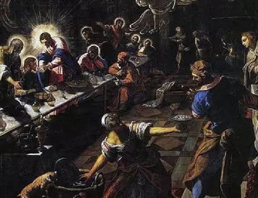 同时这幅《最后的晚餐》也是丁托列托生命最后一年所绘制的,而在他的晚年创作中,其作品的色彩也变得越来越黑暗,越来越神秘。
