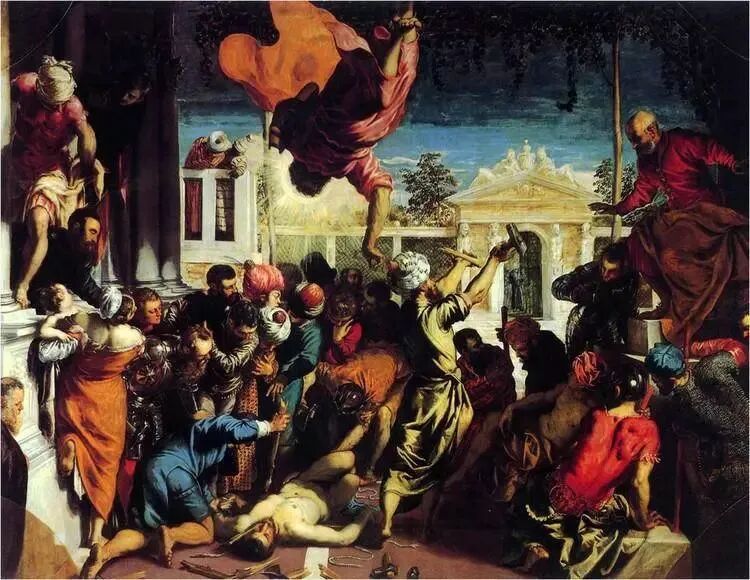 这幅绘制于丁托列托30岁时的作品《圣马可的奇迹》,正是充分彰显了他在画面空间的巧妙处理。