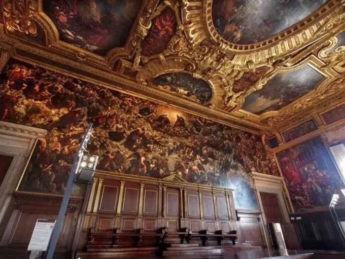 前面提到过,丁托列托善于利用光感和空间塑造出气势不凡的戏剧效果,同时表现在巨幅作品上的效果更加显著。