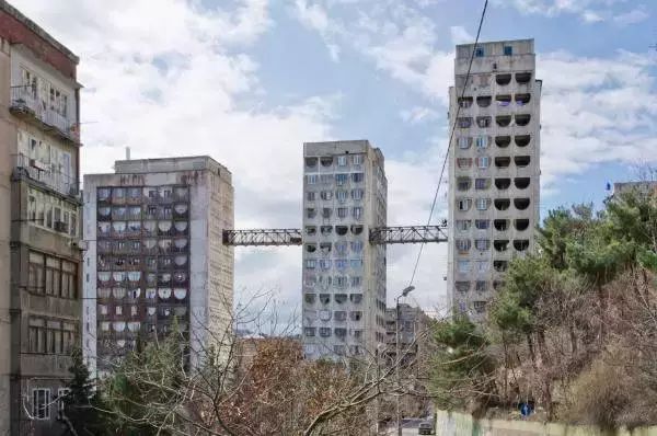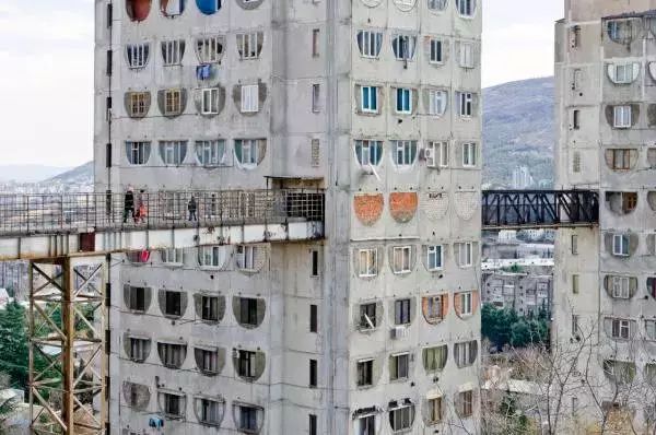 这次,还是在第比利斯,这么魔性的天桥直接穿过房屋,高高地架离地面,连接上了两栋楼。