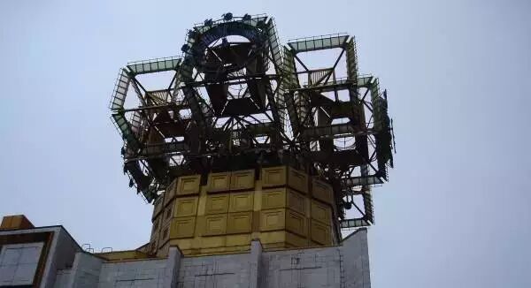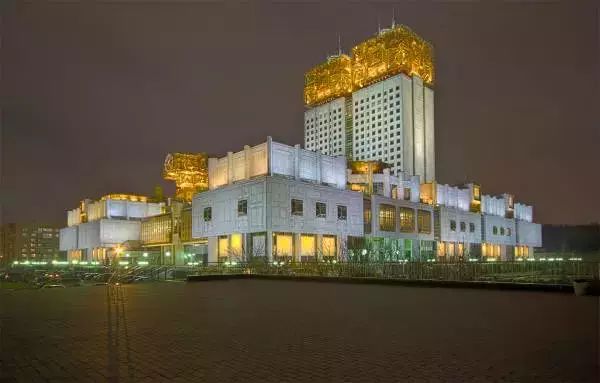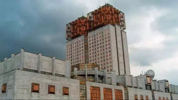 这栋楼是俄罗斯国家科学院,坐落在莫斯科,修了将近二十年,在 1994 年才完工。在顶部有玻璃与金属所构成的装饰,当地人都把这栋楼的顶部叫做「金色大脑」。