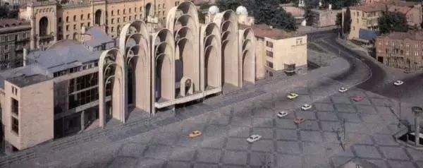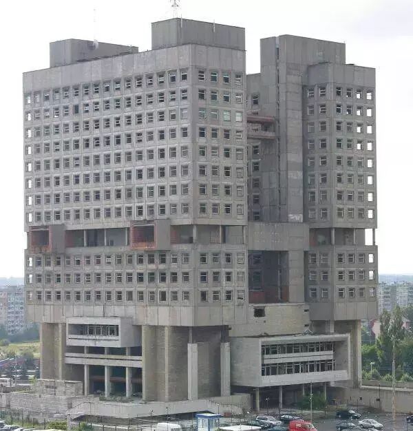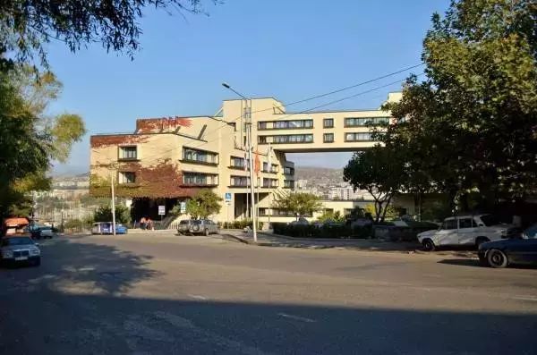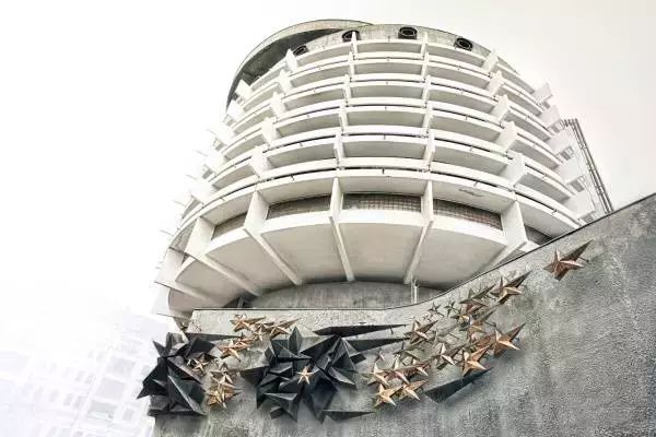 这是前苏联的一个标识化的未来主义建筑,在格鲁吉亚的首都 Tbilisi(第比利斯),当初修建是为了当他们高速公路部(一个政府部门)的办公大楼的。建筑师就是当时的高速路部长 Giorgi Chakhava。设计就是为了让建筑更少量地接触地面,阳光可以从更多的角度照射进窗子。