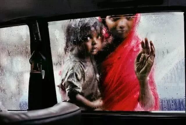 “当时我在出租车里等红灯,一个女人抱着她的孩子趴到车窗上往里看。我立即拿出了相机拍下了这个瞬间。”