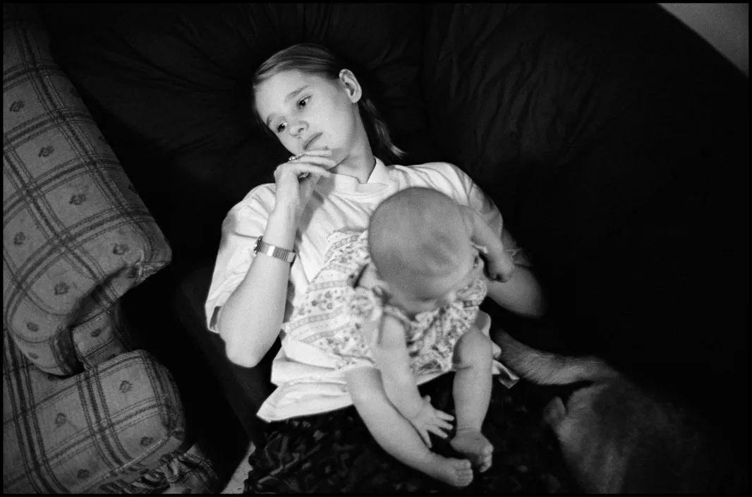 美国西雅图,15岁的女孩“冰”和她5个月大的儿子德文,1994。