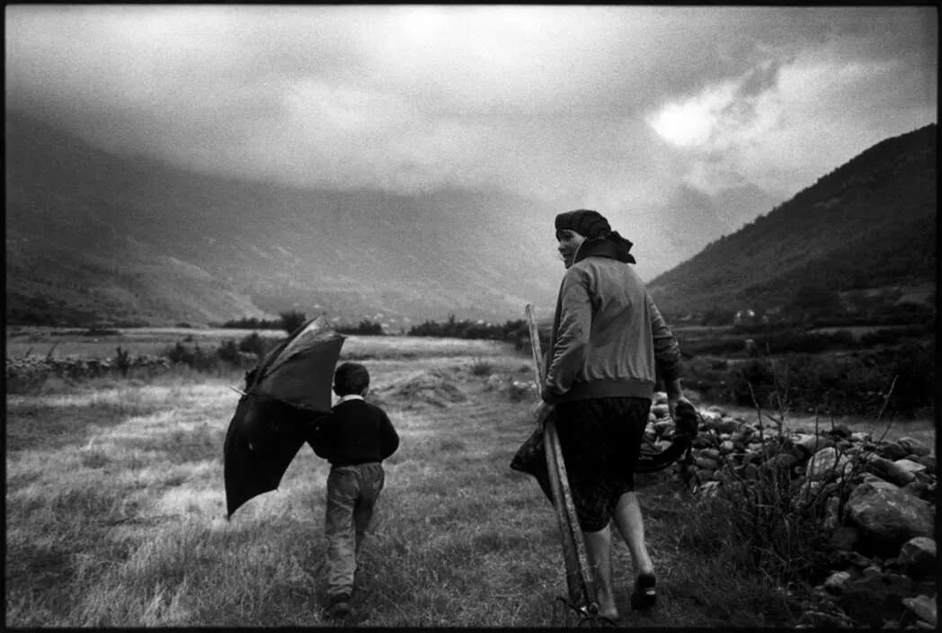 母亲带着孩子刚下班回家,阿尔巴尼亚,1998。