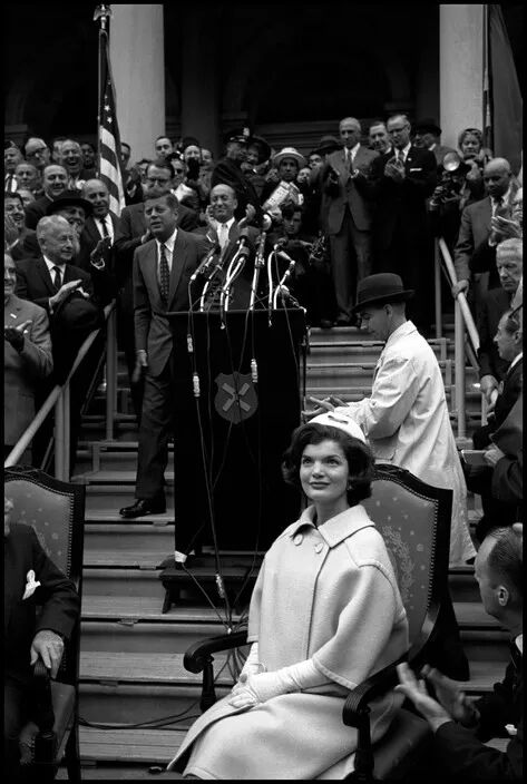 怀孕的杰奎琳·肯尼迪和她的丈夫约翰·肯尼迪正在参与总统竞选。