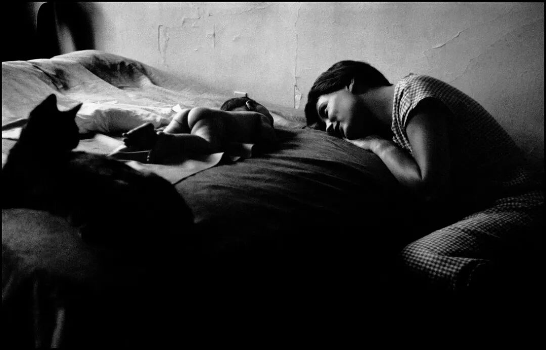 玛格南摄影师艾略特·厄威特(Elliott Erwitt)的第一任妻子正注视着出生不久的孩子。