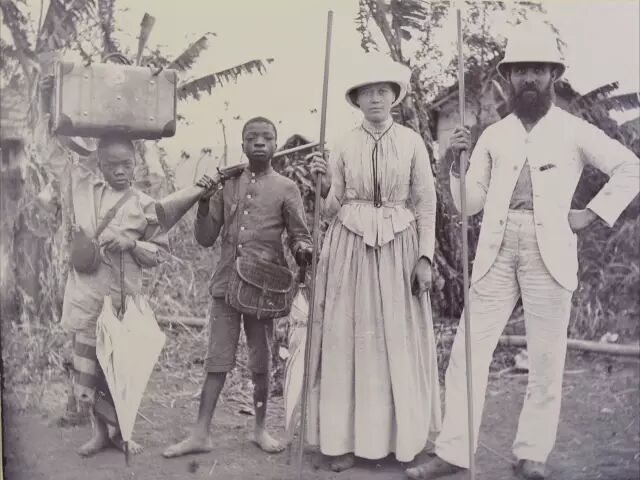 在刚果,两名传教士和两名当地小孩。时间是1888年