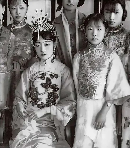 婉容与身边的人合照,还是看得出贵气和美丽。