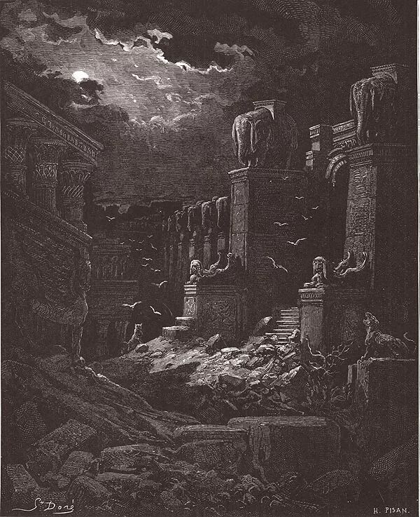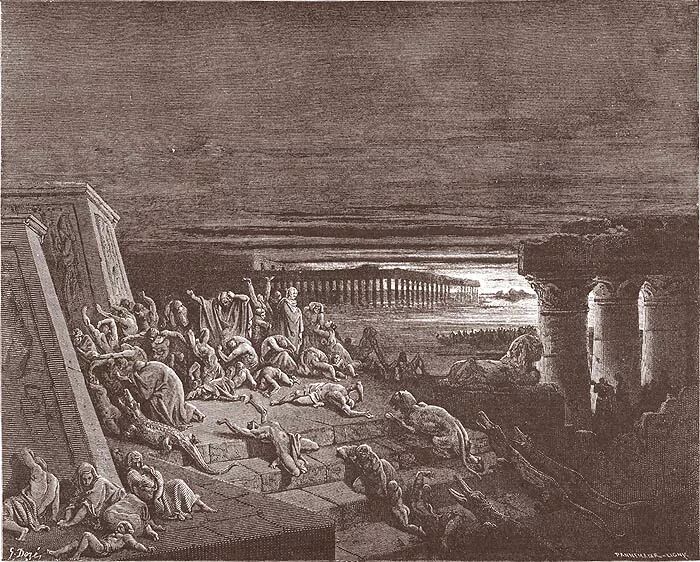 七十年代,多雷仍在源源不断地创作插图对开本,但内容则更为多样化,无论旅行写生类的《西班牙》与历史类的《十字军史》,还是拉伯雷、阿利奥斯托的经典名著,《老水手之歌》这样的浪漫主义诗作,都在多雷笔下得到了展现。 1882年,多雷接受了他唯一来自美国方面委托,开始不断为爱伦·坡的长诗《乌鸦》创作插图。1883年初,就在《乌鸦》的雕版插图快要完成时,多雷逝世了。那时,他刚过51岁。 在十九世纪六十年代末期,多雷再次接受了新的艺术感召。在他的全部艺术生涯里,几乎每隔五年,就要转入一个全新的天地。多雷最大遗憾是,法国的权威艺术机构不愿把他看作一位画家。诚然,多雷很难让他的雕版插图具有不同层次的颜色变化,因此,有人猜他其实是一个色盲。法国的艺术家们唯恐多雷会凭着他的插图作品在他们的领域内跃居高位。不过,多雷在英国找到了他一直在寻求的那种对艺术家的全然敬重。在生命的最后十五年中,多雷差不多更为英国人,而不是法国人所推崇。