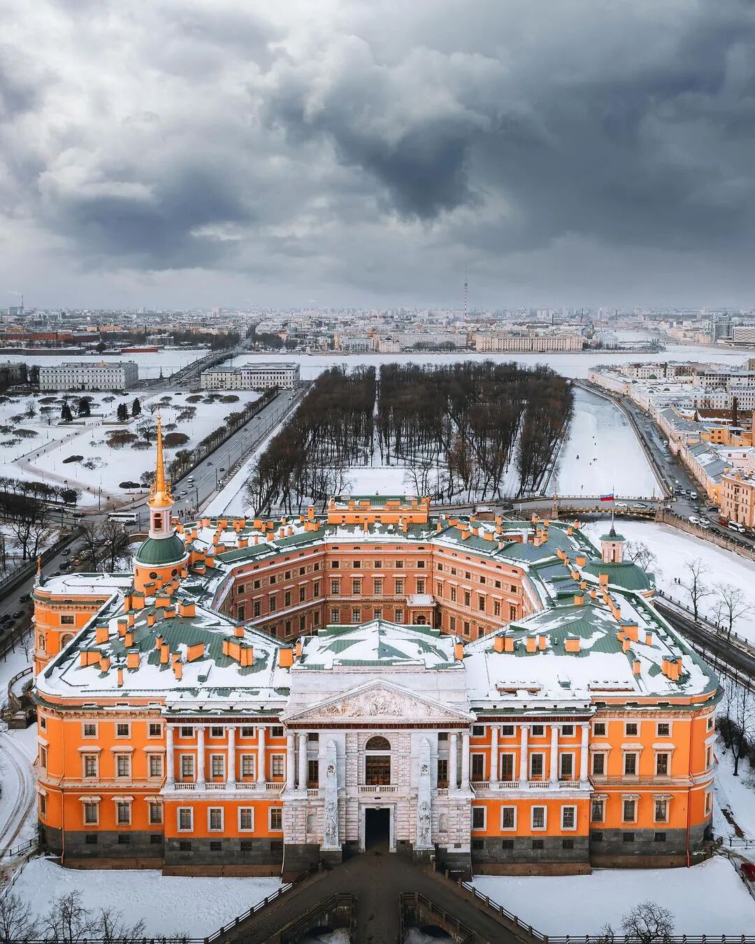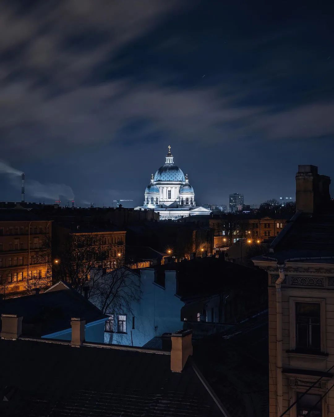 在圣彼得堡的屋顶上,可以看到三一大教堂