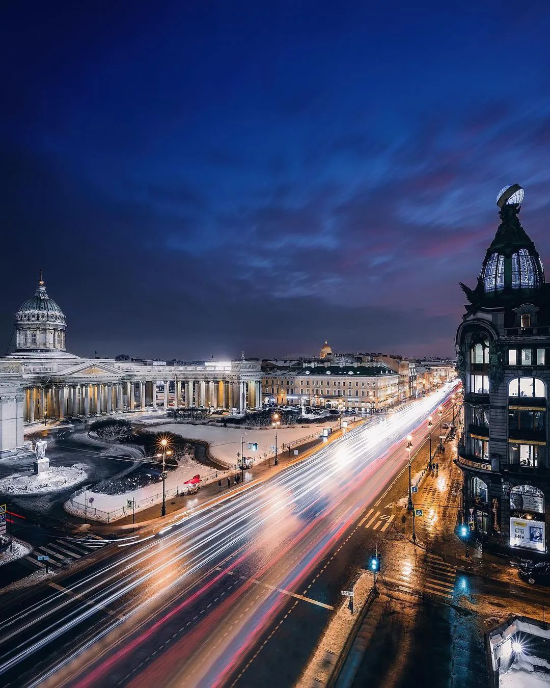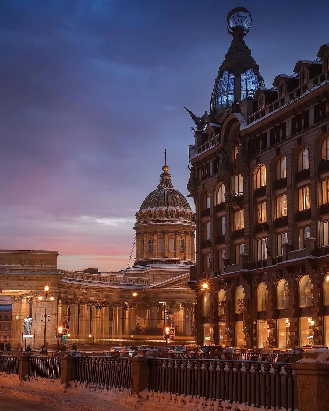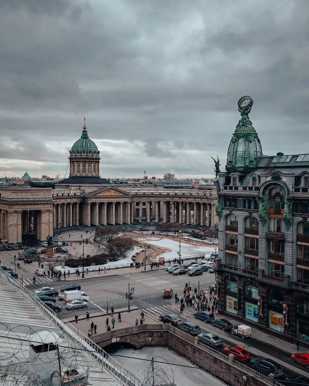 从格里博耶多夫运河到喀山大教堂和辛格大厦的景色