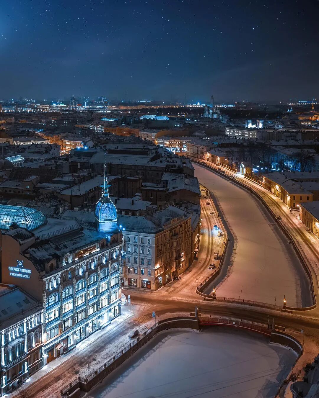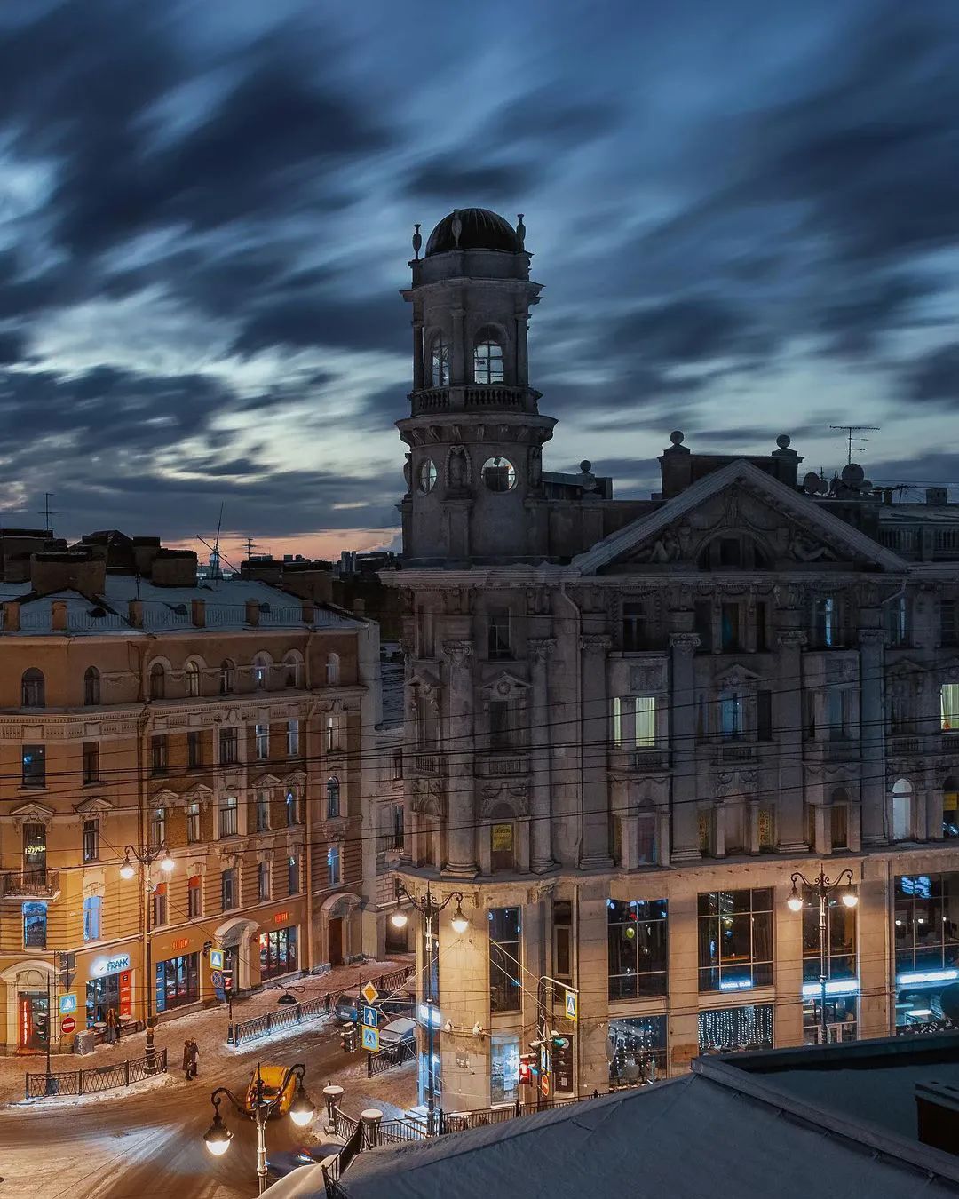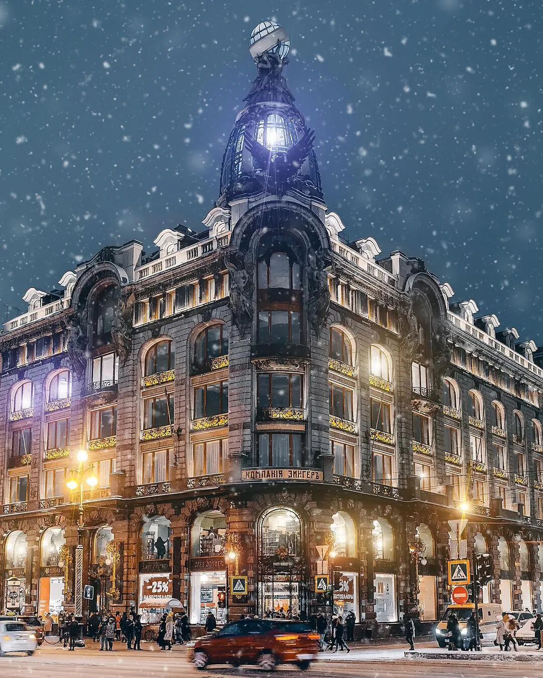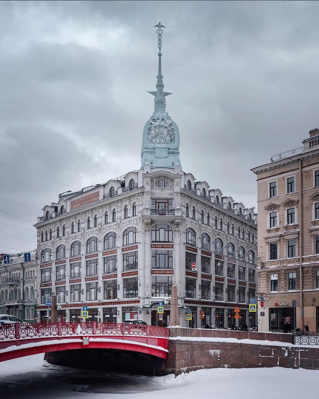 从格里博耶多夫运河到喀山大教堂和辛格大厦的景色