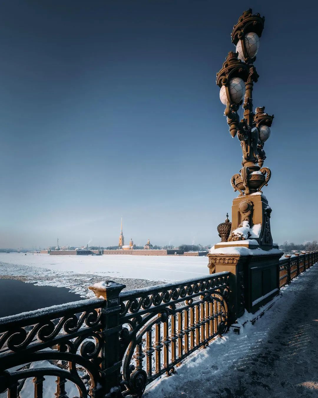 涅瓦河和特利尼茨桥上彼得罗夫帕夫要塞的景色