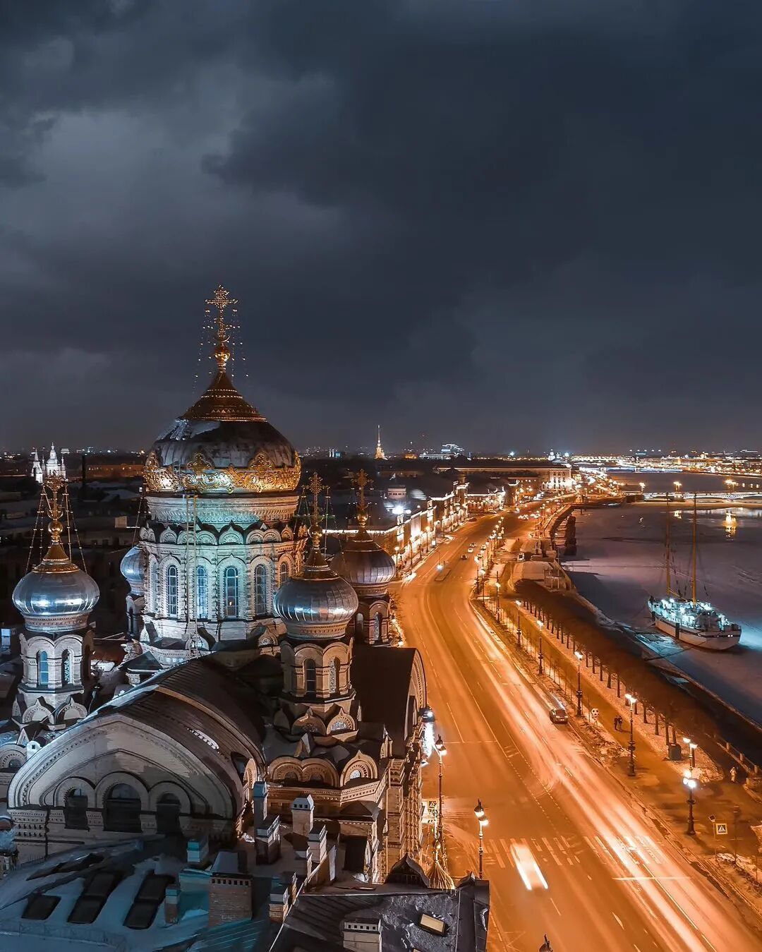 乌斯本教堂和施密特中尉码头的景色