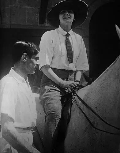 香奈儿则穿戴着简单的白衬衣、马裤和草帽,