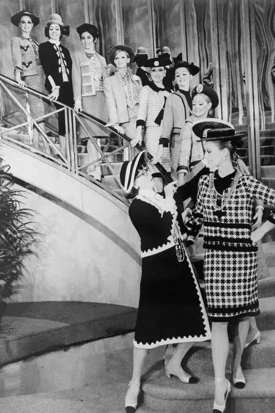 身穿香奈儿经典套装和双色皮鞋的模特们