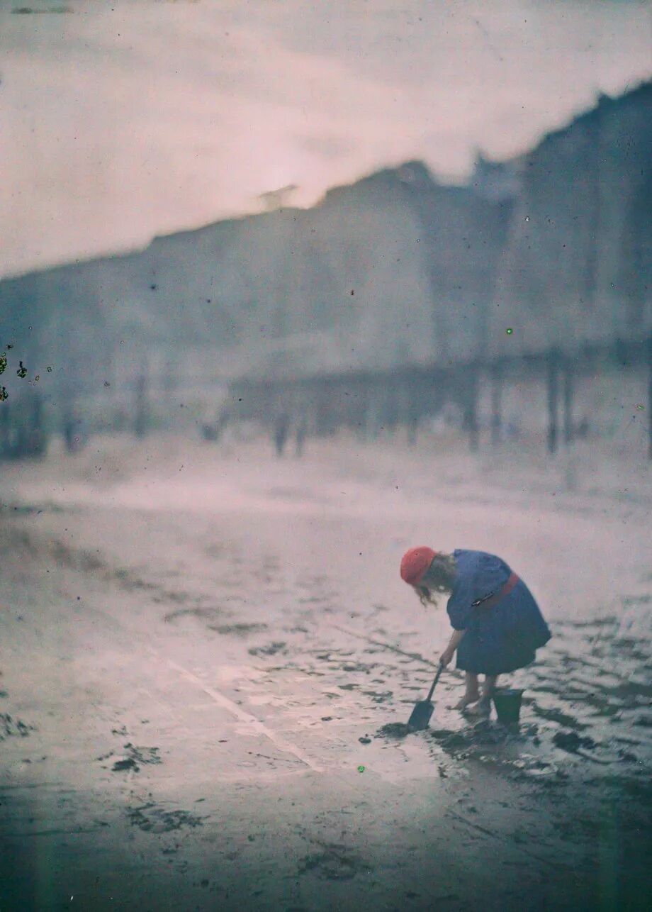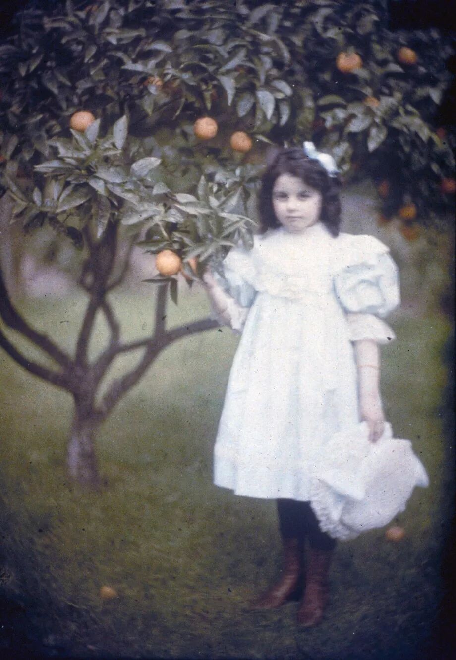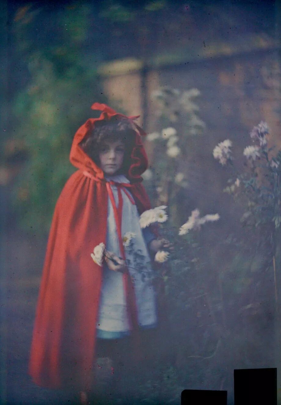 “Autochrome”又称“天然彩色相片”技术,它主要是把染有红、蓝、绿的土豆淀粉颗粒镀在玻璃上,作为彩色滤镜使用。与黑白摄影相比,天然彩色技术拍摄照片需要更长的曝光时间,最终的影像则会出现轻微的颗粒沉淀物,这让照片如梦幻般美丽。