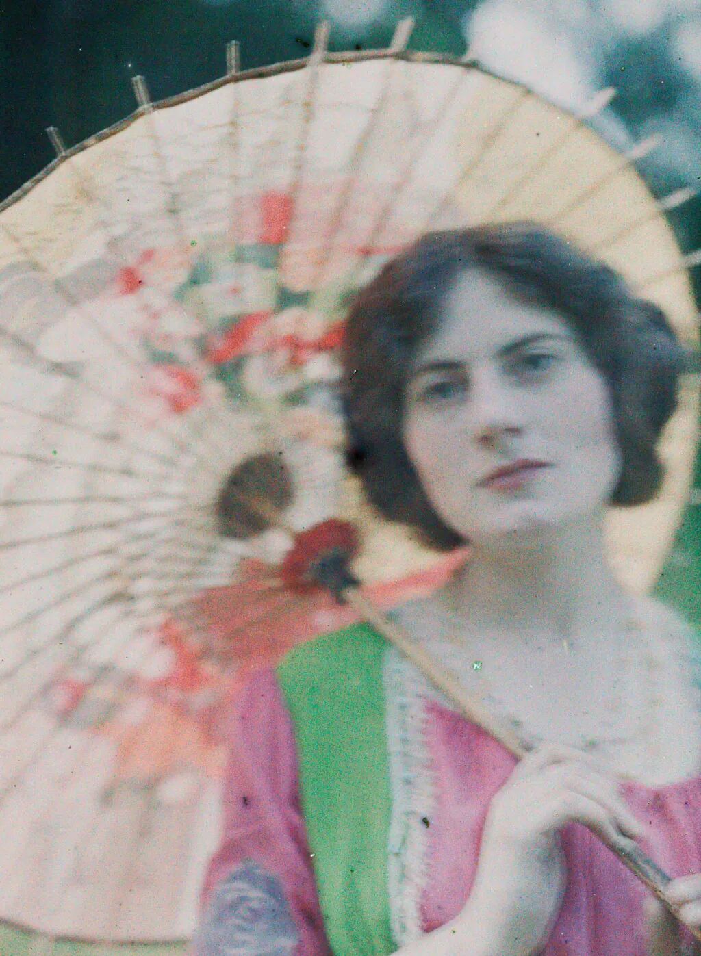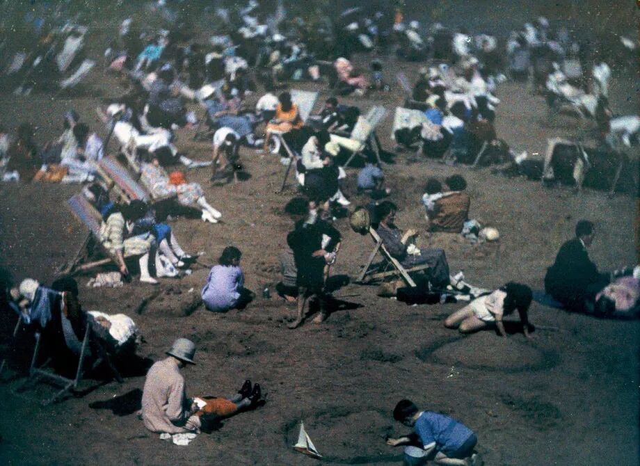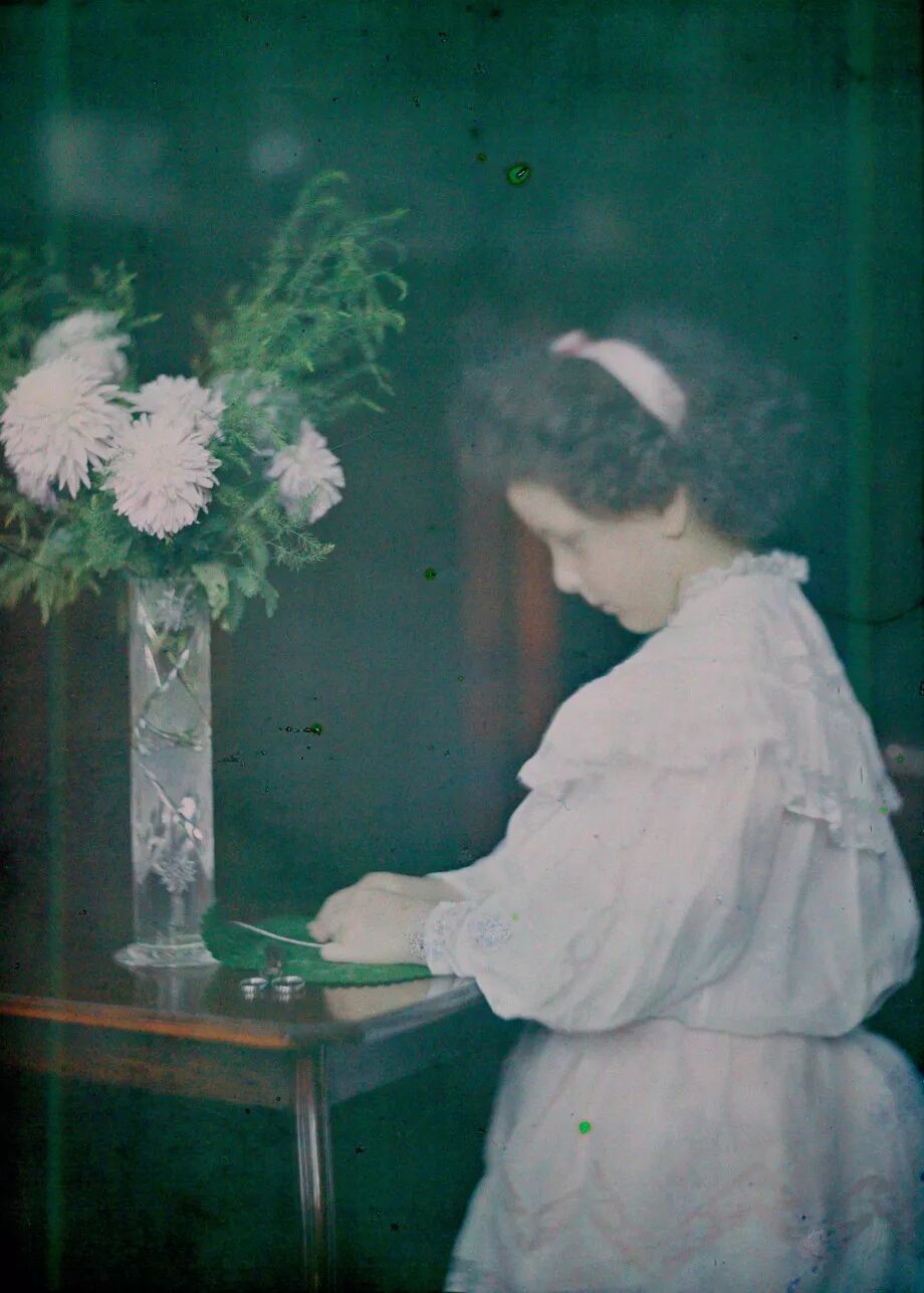 “Autochrome”又称“天然彩色相片”技术,它主要是把染有红、蓝、绿的土豆淀粉颗粒镀在玻璃上,作为彩色滤镜使用。与黑白摄影相比,天然彩色技术拍摄照片需要更长的曝光时间,最终的影像则会出现轻微的颗粒沉淀物,这让照片如梦幻般美丽。