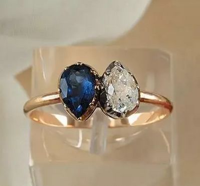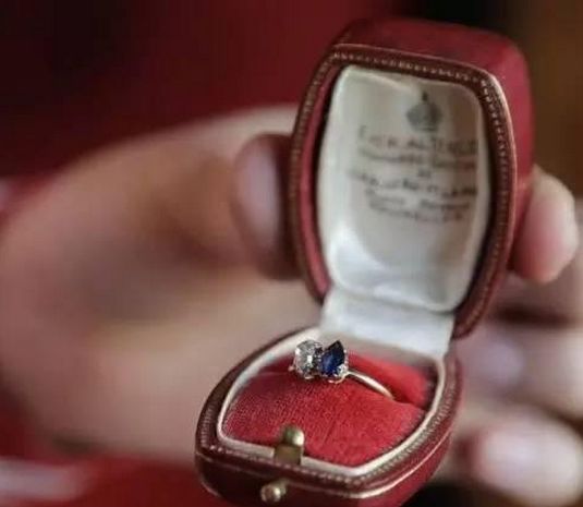 他们的结婚戒指颇为浪漫,在黄金戒托上,镶嵌了两颗同样大小钻石和蓝宝石,象征着“我和你”。