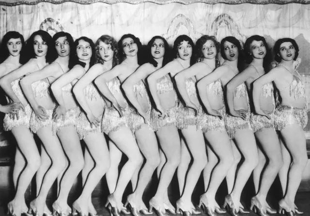1925年,歌舞团的女演员们穿着显露美好身姿的演出服。