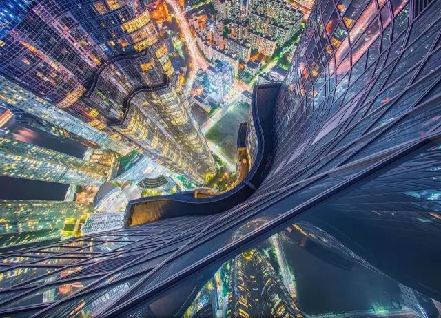 韩国釜山,亚洲最高的住宅楼The Zenith顶端,从此俯瞰,镜头下的釜山似乎是一个完全不同的世界,闪烁的都市霓虹能将位于高空的心理恐惧消除,甚至带来一种难以言喻的平静。